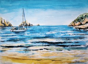Ibizza, Bucht auf der Nordseite, 2019, Aquarell, 40 x 30 cm