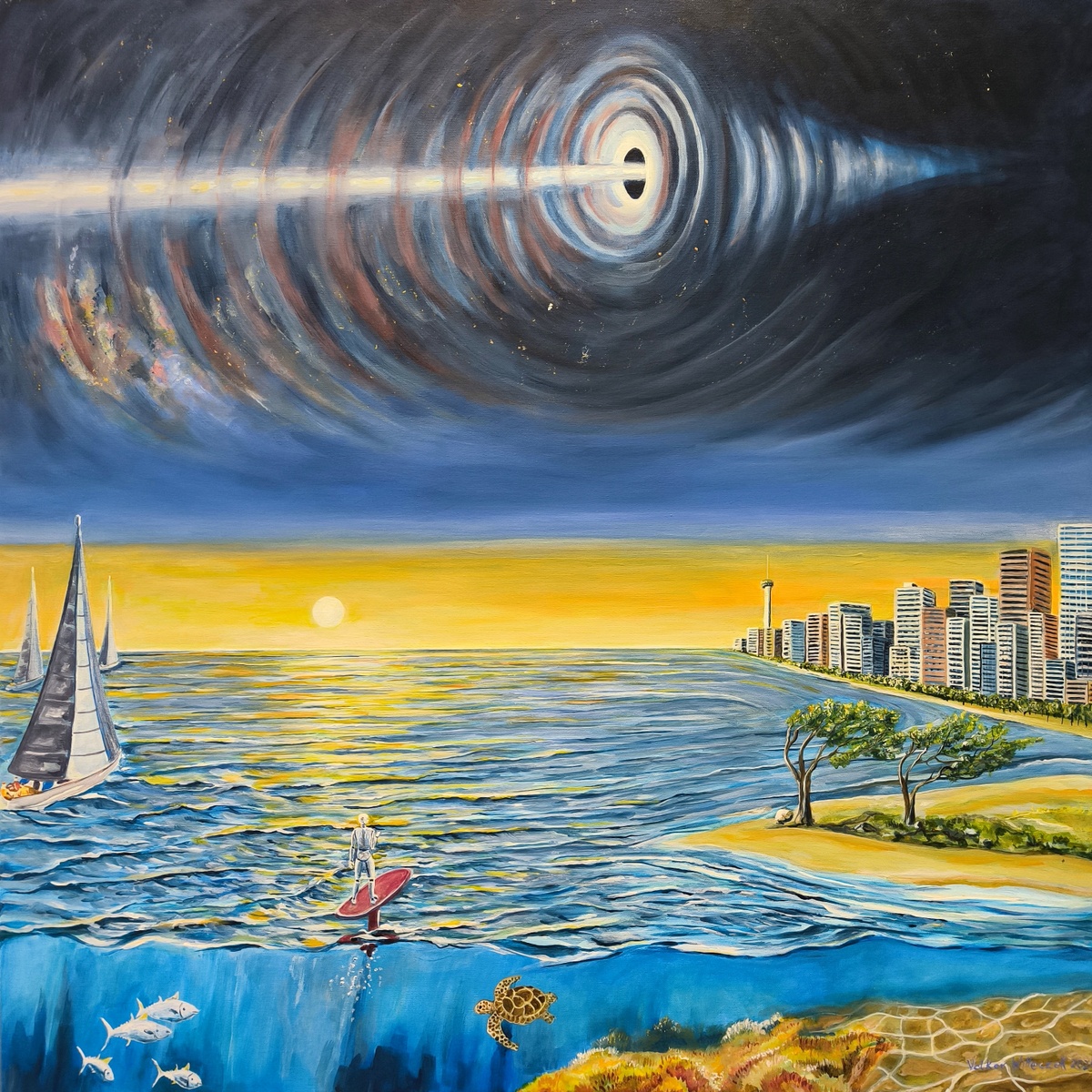 Sesimbra -Portugal- und Erkundung des Weltalls, Öl auf Leinwand, 120 x 70 cm, 2024